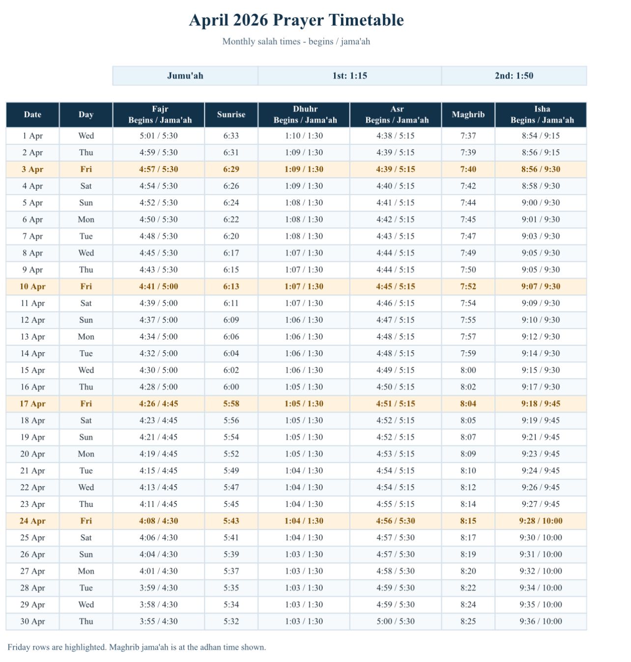 Prayer Times